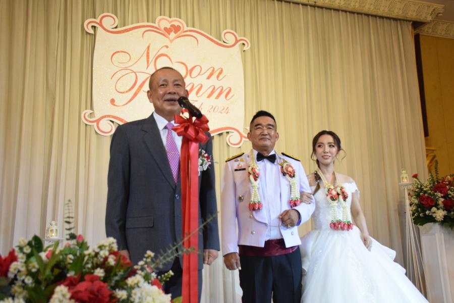 วันที่ 10 กุมภาพันธ์ 2567 งานแต่งตรุษจีนยิ่งใหญ่อลังการ ในงานแต่งของ ”นพรัตน์ รจนากูล กับ พล.ต.ต.วิสูตร นาคจู“ เชิญแขกมาร่วมในงานคับคั่ง ที่ห้องแกรนด์บอลรูม โรงแรม ดิเอมเมอรัลด์