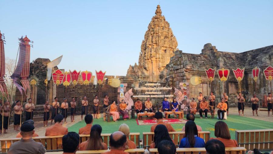 ที่บริเวณด้านทิศตะวันตกเฉียงเหนือ ปราสาทพนมรุ้ง อุทยานประวัติศาสตร์พนมรุ้ง ต.ตาเป๊ก อ.เฉลิมพระเกียรติ จ.บุรีรัมย์ นายปิยะ ปิจนำ ผู้ว่าราชการจังหวัดบุรีรัมย์ พร้อมด้วย เภสัชกรหญิง ณัฐรดา ปิจนำ นายกเหล่กาชาดจังหวัดบุรีรัมย์ นายรุ่งโรจน์ ทองศรี สมาชิกสภาผู้เเทนราษฎร จ.บุรีรัมย์ นายภาคภูมิ อยู่พูล หัวหน้าอุทยานประวัติศาสตร์พนมรุ้ง นางกัญญารัตน์ ท่วมไธสง ท่องเที่ยวและกีฬาจังหวัดบุรีรัมย์ นายศักดิ์กรินทร์ คูณประโคน นายอำเภอเฉลิมพระเกียรติ นางรัชนี สาระวิถี พัฒนาการจังหวัดบุรีรัมย์ และนางสาวจิตสุภา หมื่นยงค์ วัฒนธรรมจังหวัดบุรีรัมย์