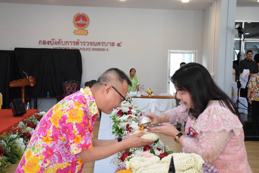 กองบังคับการตำรวจนครบาล ๔ จัดพิธีรดน้ำดำหัวผู้บังคับบัญชาเนื่องในเทศกาลสงกรานต์ บก.น.๔ ขอบคุณที่ให้ความร่วมมือสนับสนุนการทำงานของ บก.น.๔ ให้ประสบผลสำเร็จในหลายด้าน