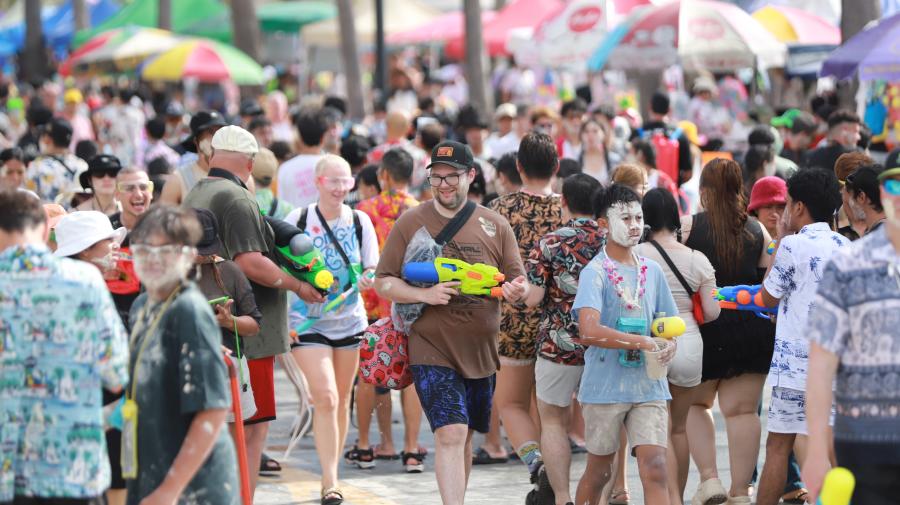 นักท่องเที่ยวทั้งชาวไทยและต่างชาตินับหมื่นทะลักสาดน้ำเล่นสงกรานต์วันไหลพัทยา ผบช.ภาค 2 มั่นใจมาตรการดูแลความปลอดภัย