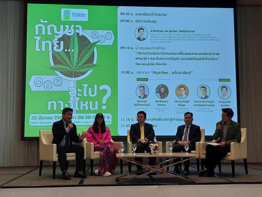 การเสวนาในครั้งนี้ ได้เสวนา “ความเป็นมาของโครงการฯ และทิศทาง “ กัญชาไทย.. จะไปทางไหน ” ใช้อย่างไรถึงปลอดภัยและได้ประโยชน์” เพื่อลดผลกระทบต่อสุขภาพ เศรษฐกิจ และสังคมจากกัญชา ที่คณะวิจัยเพื่อการพัฒนาประเทศไทย (ทีดีอารไอ) ได้ทำการวิจัย การกำหนดให้ประชาชนสามารถเข้าถึงกัญชา-กัญชงได้ในลักษณะเสรี” หลังจากปลดล็อกกัญชาออกจากยาเสพติด ทำให้เกิดการเปลี่ยนแปลงหลายอย่างในประเทศไทยทั้งด้านเศรษฐกิจและสังคม แม้ว่ากัญชาจะมีประโยชน์สำหรับการเพิ่มทางเลือกให้กับการรักษาทางการแพทย์