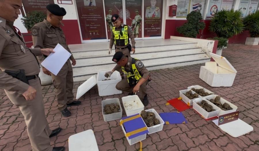 การตรวจยึดครั้งนี้ เนื่องจากเจ้าหน้าที่ได้รับแจ้งว่า มีเครือข่ายผู้ลักลอบขนย้ายสัตว์ป่าคุ้มครองที่มิชอบด้วยกฎหมาย โดยผู้ลักลอบขนส่งจะใช้วิธีการซุกซ่อนสัตว์ป่าคุ้มครองมากับกล่องโฟมและปิดผนึกด้วยกระดาษกาวและเขียนอำพรางบนกล่องว่าเป็นปลาสวยงาม ซึ่งจะขนส่งมากับรถโดยสารประจำรถประจำทาง สายสุไหงโก-ลก - เกาะสมุย เป็นประจำ เจ้าหน้าที่ตำรวจจึงติดตามจับกุมผู้ที่เกี่ยวข้องกับการกระทำความผิด