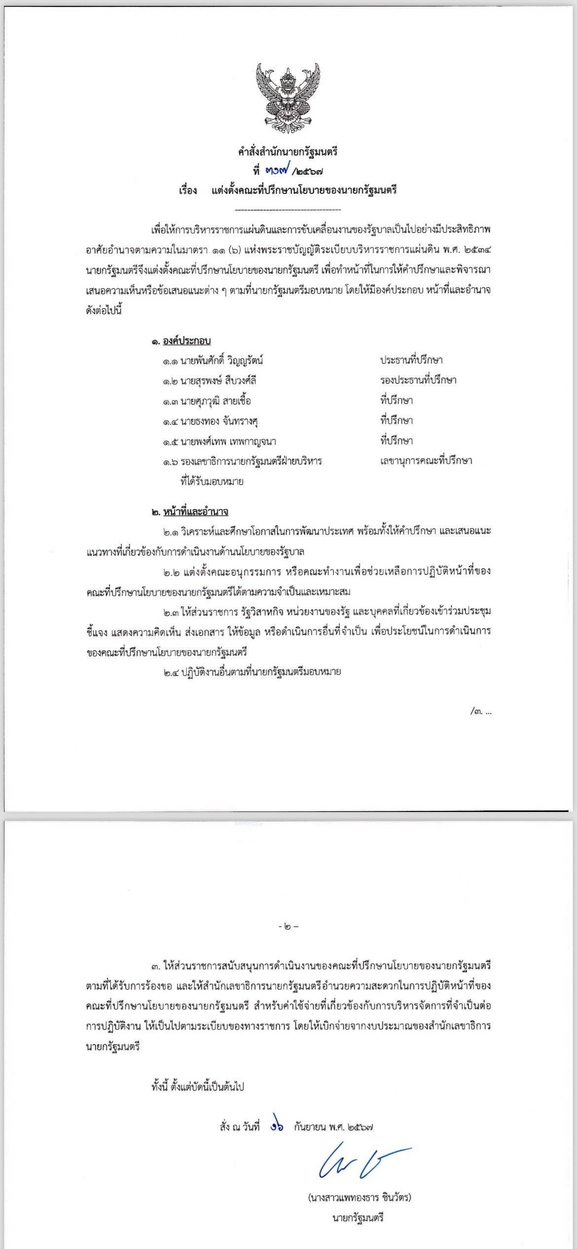 อุ๊งอิ้ง เซ็นแต่งตั้ง 5 ที่ปรึกษา นายกฯ ส่องดูมีใครบ้าง