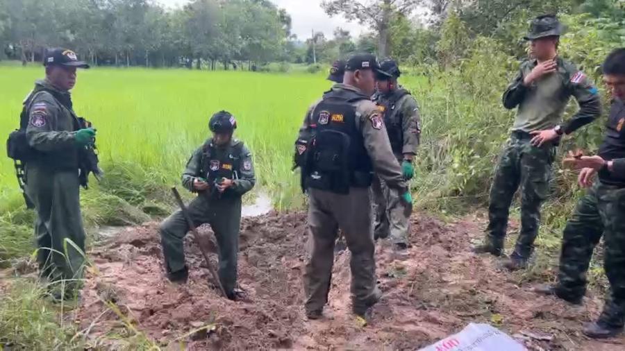 สาเหตุที่พบ เนื่องจากช่วงนี้มีฝนตกหนักติดต่อกัน ทำให้น้ำชะล้างดินโคลนที่กลบไว้ เมื่อเดินผ่านจึงเห็นวัตถุโลหะขนาดใหญ่โผล่พ้นดิน จึงรีบแจ้งผู้ใหญ่บ้าน ก่อนประสานเจ้าหน้าที่เก็บกู้วัตถุระเบิด (EOD) กองกำกับการตำรวจตระเวนชายแดนที่ 22 อุบลราชธานี และกองกำลังสุรนารี เข้าตรวจสอบ