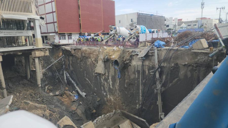 วันนี้ (25 ก.ย. 68) เจ้าหน้าที่ได้มีการปรับแผน จากเดิมที่ใช้ รถเครนในการยกแผ่นชาร์ปด้านในหลุมออกมา แต่เนื่องจากติดเหล็ก และวัตถุอื่น ๆ ด้านในหลุม จึงปรับแผนเป็นการเทปูนลงไปรุดรูด้านใน ซึ่งได้ทยอยเคลียร์พื้นที่ นำรถเครนออก เพื่อให้รถปูนเข้ามาในพื้นที่ได้ ซึ่งใช้รถปูน 100 คัน แต่ละคันจะเทปูนประมาณ 500 ลูกบาศก์เมตร ลงไปในหลุม เพื่ออุดรูบริเวณอุโมงค์ ซึ่งจะสูงขึ้นมา 3 เมตร
