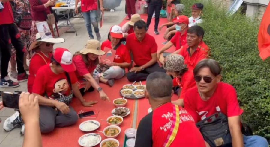คนเสื้อแดงล้อมวงกินแกงส้ม-ต้มยำหนูหน้าคุกคลองเปรมส่งให้ ”ทักษิณ”