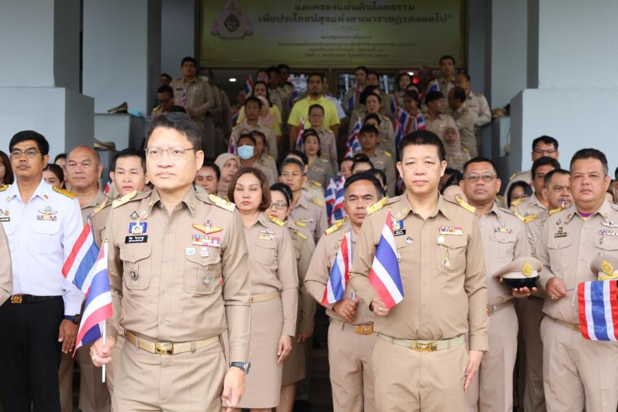 พ่อเมืองกระบี่นำขรก.เคารพธงชาติ-ร้องเพลงชาติเนื่องวันพระราชทานธงชาติไทย