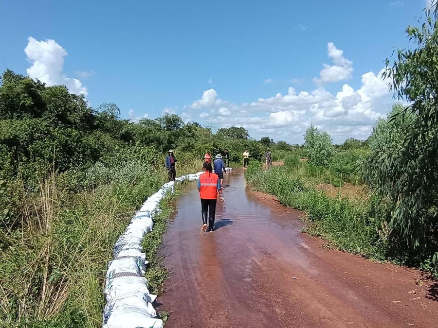 การให้ความช่วยเหลือเบื้องต้นโครงการชลประทานอำนาจเจริญ สำนักงาน ปภ. จังหวัดอำนาจเจริญอำเภอ อปท. กำนัน ผู้ใหญ่บ้านทุกหมู่บ้าน อาสาสมัคร และประชาชนในพื้นที่ ร่วมกันกรอกกระสอบทรายนำไปวางกั้นน้ำ ระยะทาง 350 เมตร ระดับน้ำท่วมสูงจากคันกั้น 30 เซนติเมตร จำนวน 3000 กระสอบ