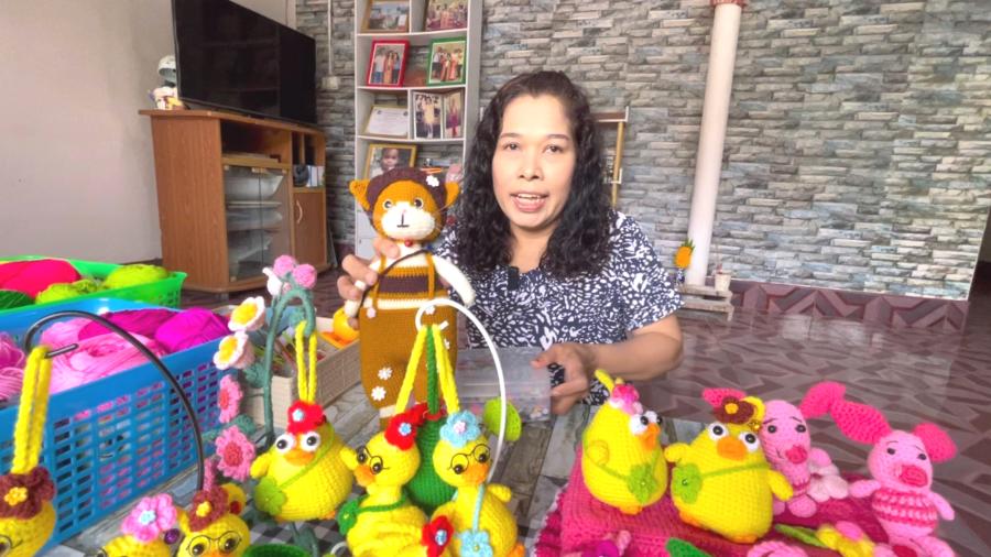 โดยงานถักตุ๊กตาไหมพรมของเธอ ถือเป็นสินค้าที่โดดเด่น จนมีออเดอร์เข้ามาไม่ขายสาย แม้จะเพิ่งทำมาจนย่างเข้าสู่ปีที่ 2 เท่านั้น เพราะเธอถักเป็นสัตว์สวยงามชนิดต่างๆ อาทิ กบ ไก่ เป็ด แมว สุนัข หมู ตัวการ์ตูน หรือแม้แต่สัตว์แปลกๆ เช่น แมงมุม จิ้งจก ก็ยังมีการสั่งเข้ามา ซึ่งแรงผลักดันในอาชีพนี้ เกิดมาจากความสนใจส่วนตัว ประกอบกับการไปศึกษาเพิ่มเติมในออนไลน์ แล้วปรับใช้เป็นงานของตัวเอง โดยมีการทำที่มีจุดเด่นแตกต่างไปจากคนอื่น เช่น มีการแต่งขนแต่งหนวดให้เหมือนสัตว์จริง หรือมีการส่งเสียงร้องออกมาจากข้างในตัวสัตว์