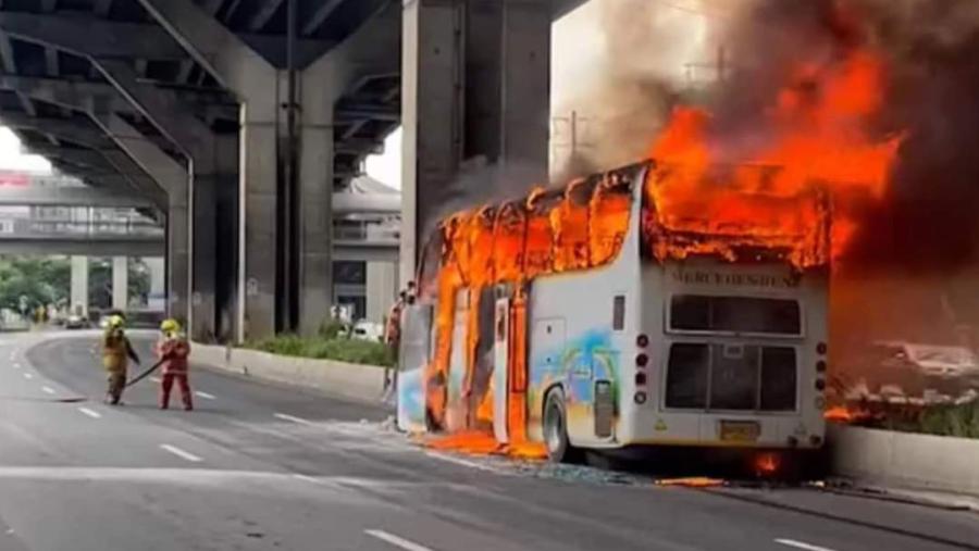 จากนั้นรถบัสทัศนศึกษาได้เกิดเพลิงลุกไหม้อย่างรุนแรงและรวดเร็ว เบื้องต้นพานักเรียนมาทั้งหมด 44 คน สามารถลงจากรถได้ 19 คน โดยเจ้าหน้าที่อยู่ระหว่างการช่วยเหลือและตรวจสอบอีกครั้ง
