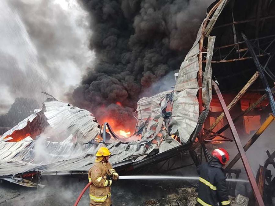 ฟ้าผ่าเปรี้ยง! ใส่โรงงานกล่องโฟม ไฟลุกไหม้วอด อาคารถล่มซ้ำ