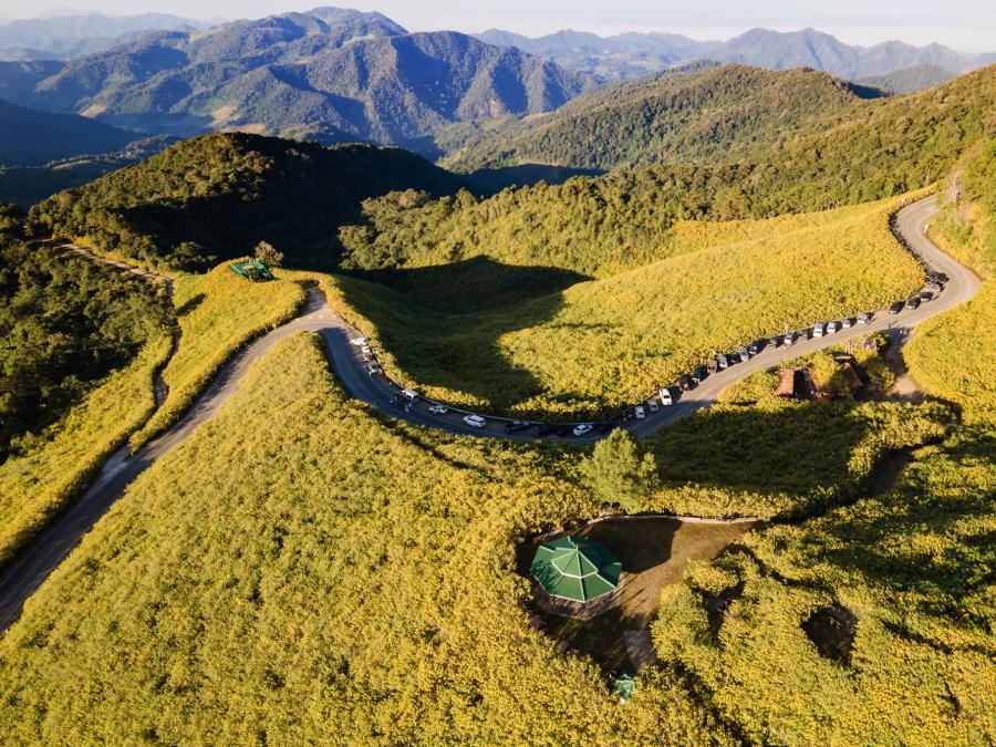 ช่วงเดือน พฤศจิกายน - ธันวาคม คือ ฤดูกาลแห่งความงามแบบเต็มพิกัด อากาศเย็นสบาย ลมพัดหอมกลิ่นหญ้า และท้องฟ้าใสเหมาะกับการถ่ายรูป ไม่ว่าจะยืนตรงมุมชมวิว หรือเดินลงไปกลางทุ่งดอกไม้ ทุกภาพที่ได้คือ “ความทรงจำสีเหลืองทอง” ที่ยากจะลืม