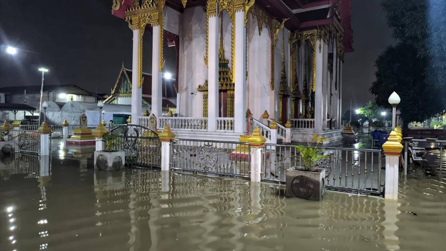 ขณะที่พื้นที่อำเภอสามโคก น้ำเจ้าพระยาเอ่อล้นเข้าท่วมวัดสามัคคิยาราม (วัดเมี่ยง) ตำบลคลองควาย อำเภอสามโคก จังหวัดปทุมธานี และชุมชนวัดเมี่ยงจมน้ำกว่า 1 เมตร แล้ว น้ำได้เอ่อเข้าท่วมบริเวณวัดทั้งหมดหลังน้ำเจ้าพระเพิ่งสูงขึ้น
