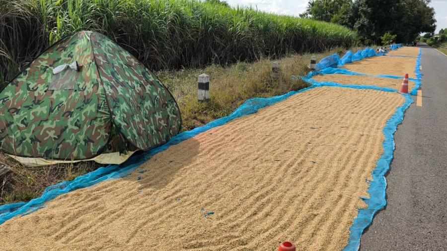 ชาวนา จ.ขอนแก่น ต่างพากันนำเต็นท์ และมุ้ง รวมทั้งหมอน และอุปกรณ์เครื่องนอนต่างๆ เพื่อนอนเฝ้าข้าวเปลือก หลังจากในระยะนี้มีการเก็บเกี่ยวผลผลิต แล้วนำมาตากที่บนถนน และพื้นที่ลานตากข้าวในจุดต่างๆ เพิ่มมากขึ้น เพื่อป้องกันคนร้ายที่อาจจะฉวยโอกาสเข้ามาขโมยข้าวเปลือก ในระยะนี้