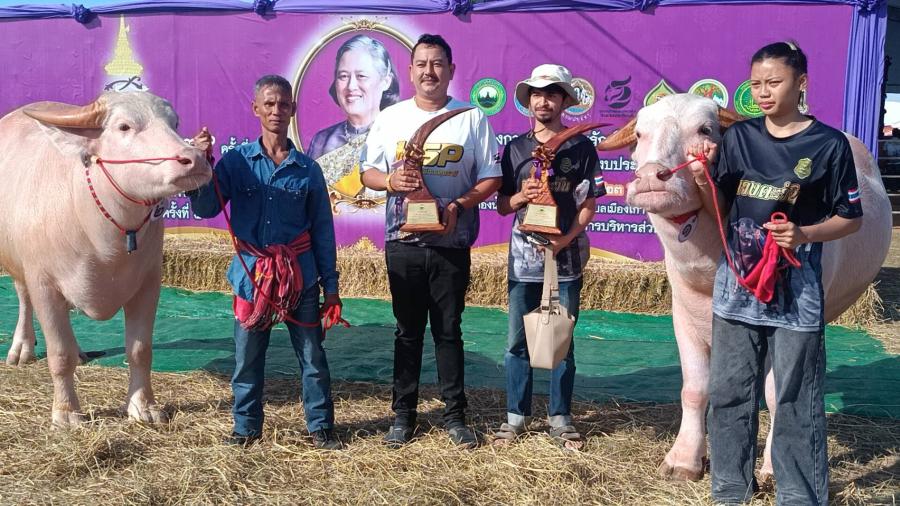 รางวัลควายสวยงาม-ควายงาน ชนะเลิศถ้วยรางวัลพร้อมเงินสดรางวัล 4000 บาท รองชนะเลิศอันดับ 1 ถ้วยพระราชทานพร้อมเงินรางวัล 3000 บาท รองชนะเลิศอันดับที่ 2 ถ้วยพระราชทานพร้อมเงินรางวัล 2000 บาท ชมเชยอันดับ 1 ใบประกาศพร้อมเงินรางวัล 1000 บาท ชมเชยอันดับ 2 ใบประกาศ พร้อมเงินรางวัล 1000 บาท