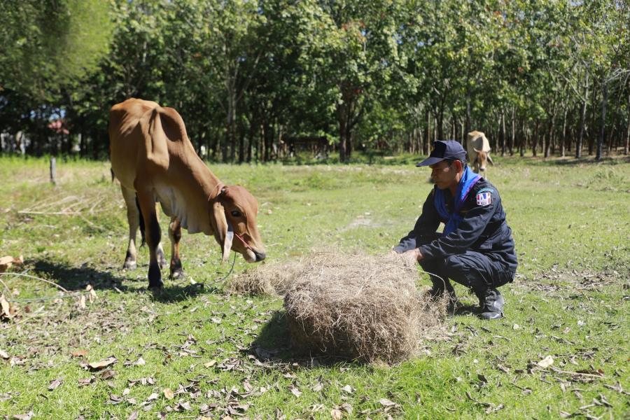 ชรบ.-ผู้นำชุมชนระดมหญ้าแห้ง-อาหารให้สัตว์เลี้ยงเพื่อความอุ่นใจผู้อพยพสู้รบชายแดน