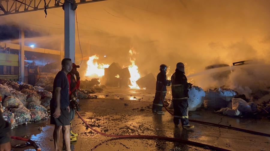 ระทึกกลางดึก!ไฟไหม้โรงงานไทยเบฟเวอเรจ รีไซเคิล ย่านปทุมธานีวอด