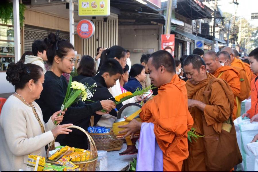 ศรีสะเกษพร้อมใจทำบุญตักบาตร 109 รูป ถวายเป็นพระราชกุศล รับปีม้าทอง