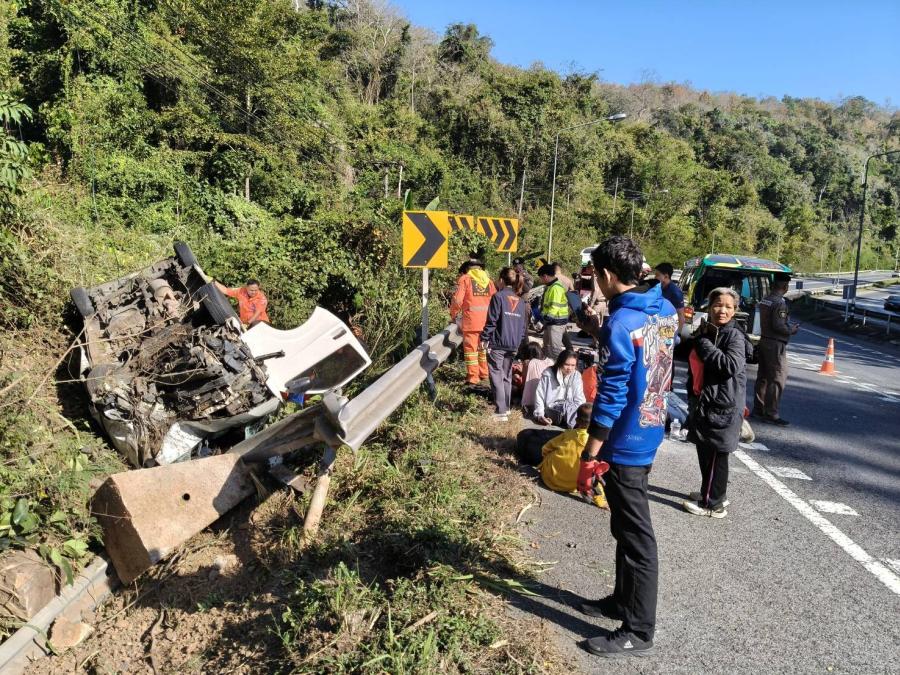 สลดรับปีใหม่ รถตู้หลับในพุ่งตกถนนสาย 304 โค้งมรณะอุดมทรัพย์ ดับ 2 เจ็บระนาว 14 ราย เร่งคลี่คลายสาเหตุและกำชับมาตรการป้องกันอุบัติเหตุซ้ำอีก