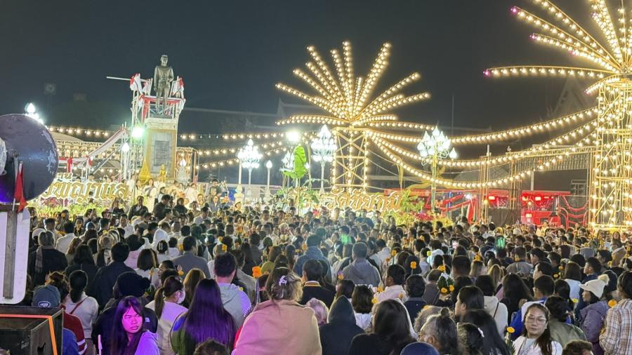 บรรยากาศเป็นไปอย่างเข้มขลังและทรงพลัง แม้อุณหภูมิจะลดต่ำลงเหลือเพียง 13 องศาเซลเซียส ท่ามกลางอากาศที่หนาวเย็นจัดในช่วงเช้ามืด แต่ก็ไม่อาจปิดกั้นพลังศรัทธาของเหล่าลูกหลานเจ้าพ่อพญาแลได้ ประชาชนจำนวนมากเดินทางมารอร่วมพิธีตั้งแต่ก่อนรุ่งสาง จนพื้นที่โดยรอบอนุสาวรีย์ใจกลางเมือง เนืองแน่นไปด้วยคลื่นมหาชน