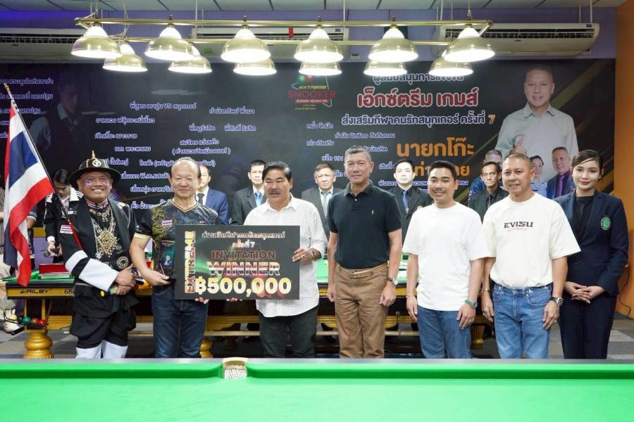 โดยได้รับเกียรติจาก พล.ต.ต.พีรพล โชติกเสถียร ผู้บังคับการตำรวจภูธรจังหวัดปทุมธานี เป็นประธานพิธีปิดการแข่งขัน ”เอ็กซ์ตรีม ส่งเสริมกีฬาคนรักสนุ๊กเกอร์ ครั้งที่ 7 พร้อมด้วยแขกผู้มีเกียรติ อาทิเช่น คุณสมจิตร แว่นแก้ว พ.อ.หญิง ชนวนพรรณ จอมซื่อตรง ที่ปรึกษาสมาคมกู้ชีพบัวเพชร พี่แจ็ค 191 ร.ต.อ วรวิทย์ แว่นแก้ว นายวีระ กล่ำสนอง อดีตนายกเทศมนตรีเมืองบางคูวัด พี่สม ประตูน้ำ กำนันไก่ เสี่ยแกะ ขนส่ง สจ.นิสิต นวลละออ เจ๊กเกี๊ยะ เยาวราช ร่วมมอบถ้วยรางวัลและเป็นสักขีพยานในการปิดการแข่งขันครั้งนี้ด้วย