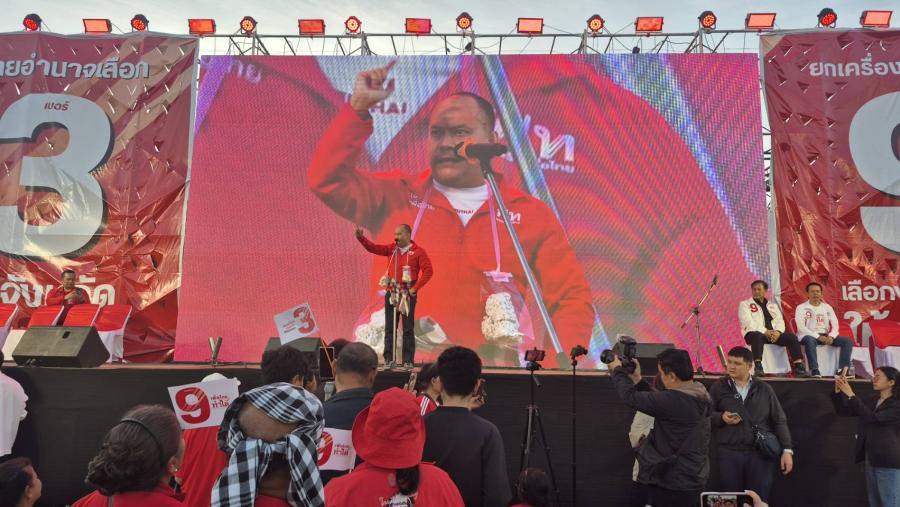 อำนาจเจริญ -โค้งสุดท้ายหาเสียงเดือด แกนนำพรรคเพื่อไทย ยกทับบุกภาคอีสาน ปักหลักที่จังหวัดอำนาจเจริญมีประชาชนมาร่วมรับฟังกว่า3หมื่นคนบรรยากาศคึกคักขอคะแนนจากประชาชน