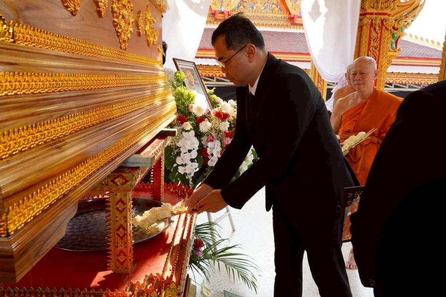 ซึ่งถึงแก่กรรมด้วยความชรา เมื่อวันที่ 1 กุมภาพันธ์ 2569 โดยมีแขกผู้มีเกียรติและบุคคลสำคัญอาทิ นายสุวิช ชูตระกูล อัยการอาวุโส จังหวัดปทุมธานี สำนักงานอัยการสูงสุด นายอุดมเดช รัตนเสถียร อดีต รมว.พัฒนาสังคม พ.ต.อ.ธงชัย เย็นประเสริฐ นายก อบจ.นนทบุรี นายสมนึก ธนเดชากุล นายกเทศมนตรีเทศบาลนครนนทบุรี ดร.ณรงค์ศักดิ์ พุทธพรมงคล ประธานกรรมการหอการค้าไทย-จีน พ.ต.อ.สิรภพ อนุศิริ ผู้กำกับการสถานีตำรวจภูธรบางใหญ่ ตลอดจนญาติสนิทมิตรสหาย อดีตนักการเมือง ผู้นำท้องถิ่น เข้าร่วมพิธีเป็นจำนวนมาก