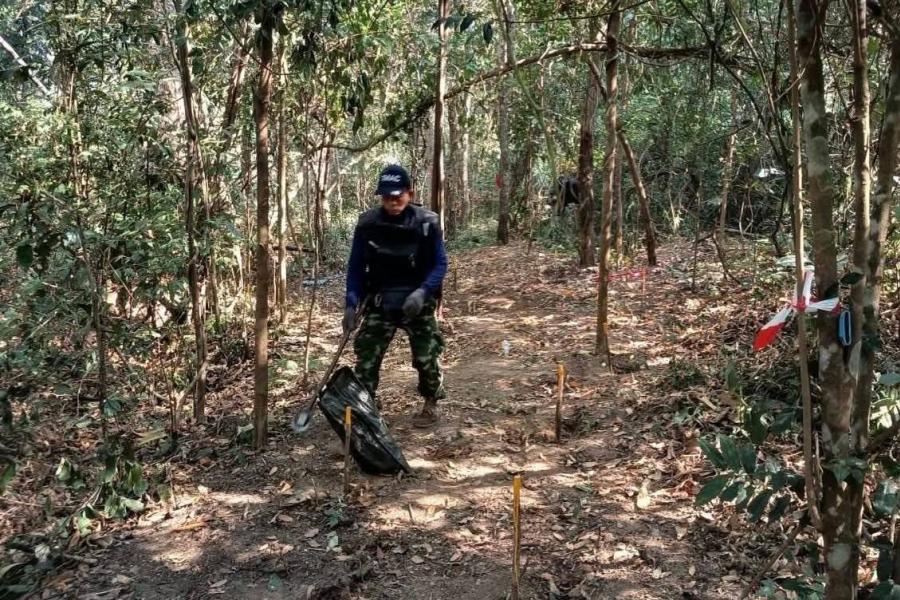 ศทช.ลุยเก็บกู้ทุ่นระเบิดพื้นที่ที่พลาญแต้ อุบลฯพบ PMN จำนวน 16 ทุ่น