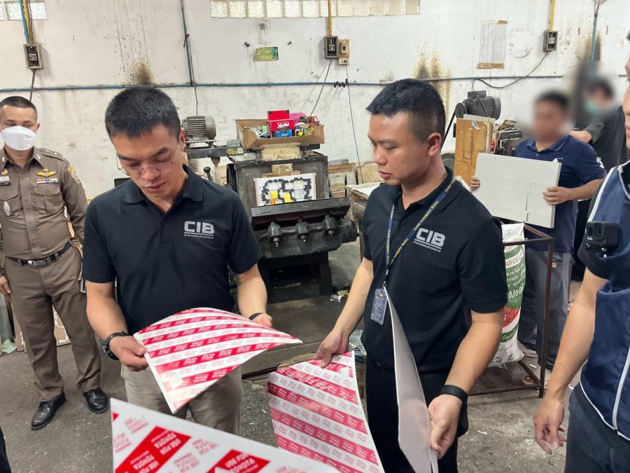 ตำรวจบุกจับคาแท่นพิมพ์! ทลายโรงงานผลิตกล่อง & อะไหล่รถยนต์ปลอมครบวงจร