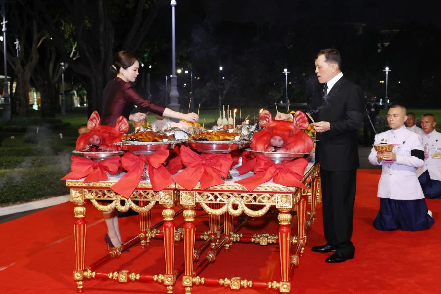 “ในหลวง-พระราชินี”ทรงประกอบพระราชพิธีสังเวยพระป้ายเนื่องในเทศกาลตรุษจีน