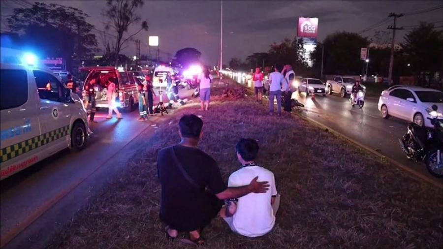 ที่เกิดเหตุพบรถยนต์เก๋งยี่ห้อซูซูกิ รุ่นสวิฟต์ สีขาว ทะเบียนอุดรธานี สภาพด้านหน้าฝั่งขวาพังเสียหายอย่างหนัก ถุงลมนิรภัยทำงานทั้งฝั่งคนขับและผู้โดยสาร มีนายจักรพงษ์ อายุ 30 ปี เป็นผู้ขับขี่ ใกล้กันพบรถจักรยานยนต์ยี่ห้อฮอนด้า 3 คัน สภาพพังเสียหายกระจัดกระจายบนเกาะกลางถนน