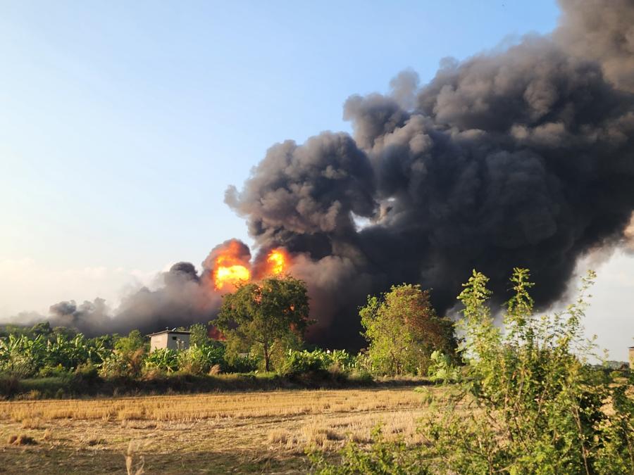 ไฟไหม้โรงงานทินเนอร์ฉะเชิงเทรากลุ่มควันพวยพุ่ง เสียงระเบิดดังสนั่น