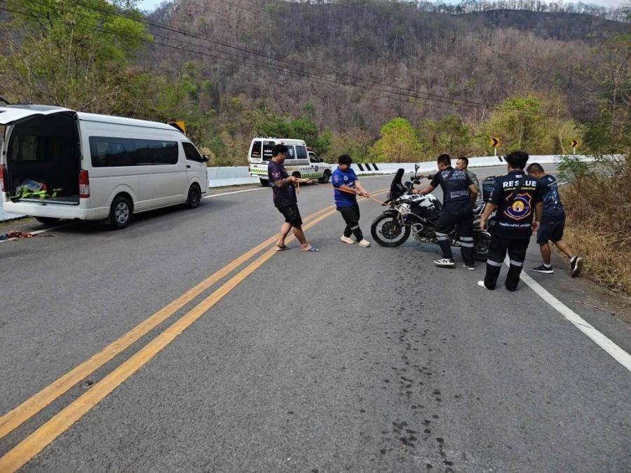 หนุ่มเยอรมันซิ่งบิ๊กไบค์เที่ยวพะเยา แหกโค้งถนนสวรรค์ 3 ชั้น พุ่งชนหน้าผาดับคาที่