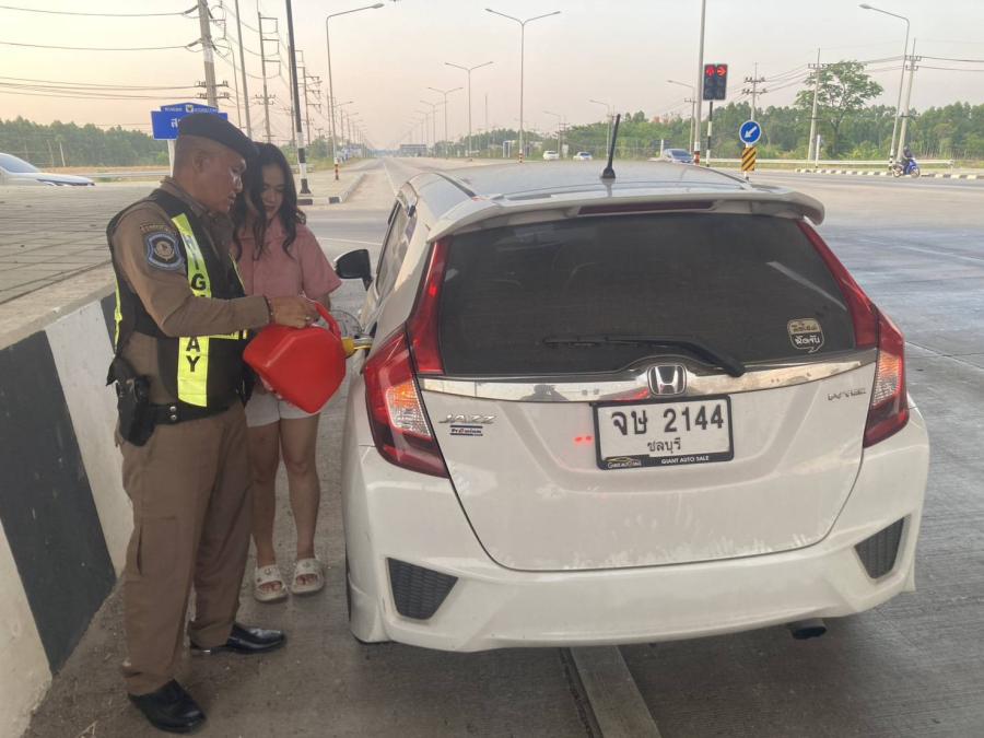 ปราจีนบุรี – สาวขับเก๋งน้ำมันหมดกลางทาง ตำรวจทางหลวง ไม่รอช้าให้ความช่วยเหลือด่วน บริเวณแยกสระขวัญ โดยได้นำน้ำมันมาช่วยเติม เพื่อให้รถสามารถเดินทางต่อไปได้