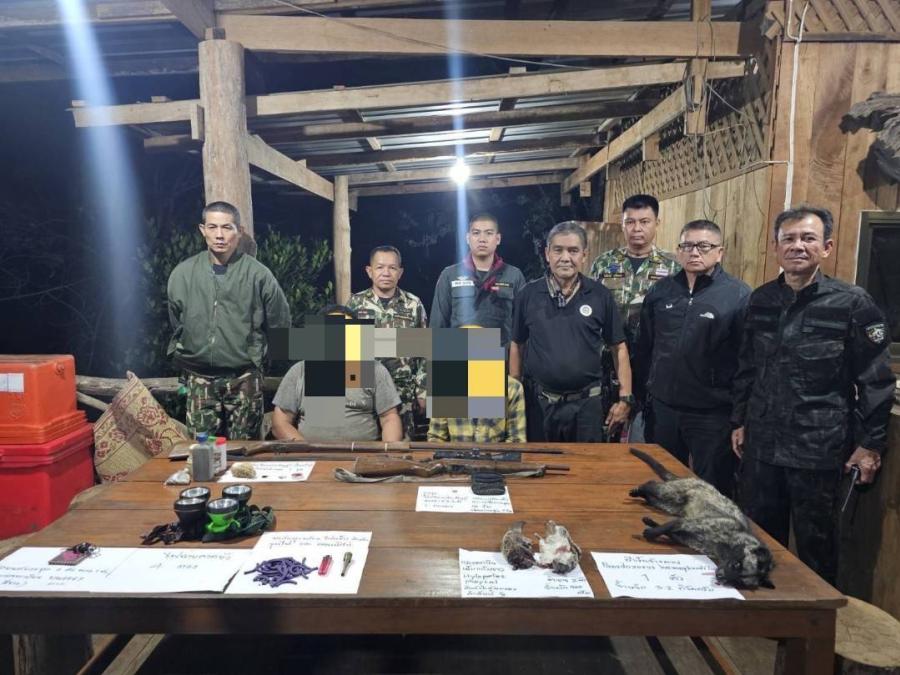 จนท.จับพรานป่า ล่าสัตว์ หนึ่งในสาเหตุหนึ่งของการเผาป่าเขตรักษาพันธ์สัตว์ป่าแม่ตื่น