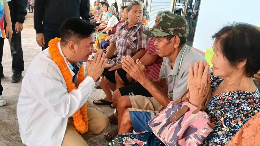นายกเล็กปราจีนบุรีนำทีมรดน้ำดหัวขอพรผู้สูงอายุเนื่อเทศกาลสงกรานต์