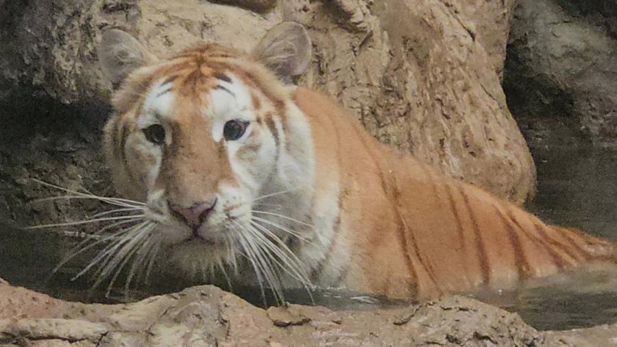 นักท่องเที่ยวจำนวนมากเดินทางมาหา ”น้องเอวา” เสือโคร่งสีทอง หรือเสือโคร่งสตรอว์เบอร์รี อายุ 3 ขวบ เพศเมีย ขวัญใจชาวโซเชียล ขณะกำลังเล่นกับ ”เจ้าลูน่า” เสือโคร่งเพศเมีย ภายในส่วนจัดแสดงไทเกอร์เวิลด์ในเชียงใหม่ไนท์ซาฟารี