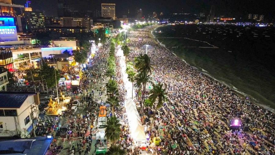 นักท่องเที่ยวทั้งชาวไทยและต่างชาติทั่วโลกจำนวนนับแสนคนทะลักชมการแสดงพลุนานาชาติเมืองพัทยาคืนแรกเต็มชายหาด คาดมีเงินสะพัดไม่ต่ำกว่า 2000 ล้านบาทช่วง 2 วัน