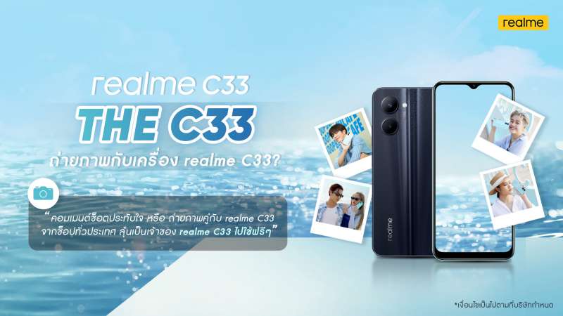 ในโอกาสนี้ realme ได้ฉลองการเปิดตัว realme C33 ด้วยกิจกรรมทั้ง Onsite และ Online ให้แฟน ๆ ได้ร่วมสนุกกันอย่างเต็มอิ่ม โดยกิจกรรมแรกคือ “Exclusive C33 Sea-themed Stickers Photo Case Decoration with KOLs” ในวันที่ 29 ตุลาคม ณ realme Brand Shop มาร์เก็ตวิลเลจ สุวรรณภูมิ คัดเลือกผู้โชคดีจำนวน 20 ท่าน มากระทบไหล่และร่วมสนุกกับ KOL ชื่อดังอย่าง คุณวิน - ธนาคม มีนธนานันท์และคุณบิ๊กบูม - จิรายุ สงวนศิลป์ นักแสดงซีรีส์ Y กับการตกแต่งเคส realme C33 ในธีมชายทะเลตามดีไซน์คอนเซ็ปต์ของตัวเครื่อง พร้อมลายเซ็นของ KOL คนโปรดบนเคสเป็นที่ระลึกและนอกจากการตกแต่งเคสในสไตล์ของตัวเองแล้ว ยังมีกิจกรรมอื่น ๆ ให้ร่วมเล่นกับ KOL เพื่อลุ้นรับ realme Buds T100 จำนวน 2 รางวัลและอีกหนึ่งกิจกรรมที่ realme ชวนทุกคนร่วมสนุกผ่านทางโซเชียลมีเดีย เพียงคุณถ่ายรูปเครื่องrealme C33 พร้อมบอกเล่าถึงความประทับใจในสมาร์ตโฟนรุ่นนี้ และโพสต์ลงเฟซบุ๊กโดยตั้งค่าเป็นสาธสารณะ พร้อมใส่แฮชแทก #realmeC33 #กล้องโดดเด่น50MPดีไซน์นำเทรนด์ เพื่อร่วมลุ้นเป็นหนึ่งในผู้ชนะที่จะได้รับ realme C33 จากแคมเปญ “แจกใหญ่จัดหนัก realme C33 จำนวน 33 เครื่อง!” โดยสามารถร่วมสนุกได้ตั้งแต่วันที่ 28 ตุลาคม - 4 พฤศจิกายน 2565