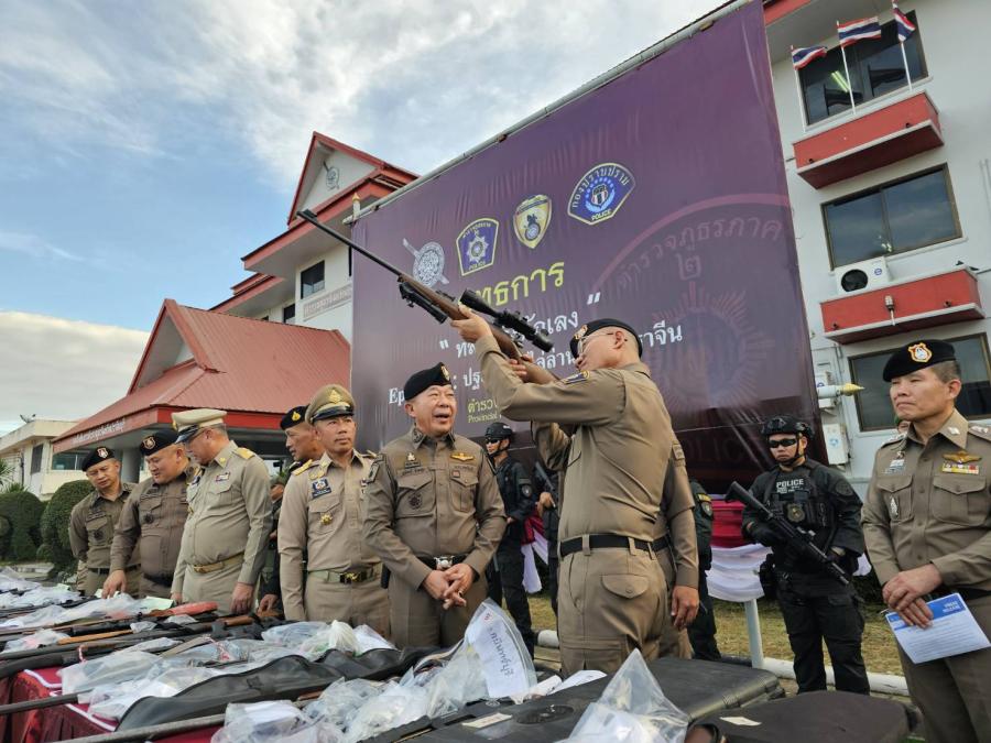 ตำรวจปราจีนบุรีเปิดยุทธการ“ทลายรังนักเลง” EP1 ค้น 3 วัน 59 เป้าหมาย ยึดอาวุธเพียบ