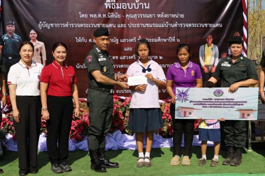 พล.ต.ท.นิตินัย หลังยาหน่าย ผบช.ตชด. เปิดเผยว่า วันนี้เดินทางมามอบผ้าห่มกันหนาวพระราชทาน สมเด็จพระกนิษฐาธิราชเจ้า กรมสมเด็จพระเทพรัตนราชสุดาฯ สยามบรมราชกุมารี ที่ทรงพระกรุณาโปรดเกล้าฯ พระราชทานผ้าห่มกันหนาว ให้กับ โรงเรียน.ตชด.ในพื้นที่ จังหวัดเลยและมอบบ้านให้ เด็กหญิง กัญญาณัฐ แสวงศรี และ เด็กชายกฤติเดช แสวงศรี พร้อมครอบครัว ได้รับโอกาสอันสำคัญนี้ โดยมี องค์การบริหารส่วนท้องถิ่น คณะกรรมการศึกษา ผู้กำกับ ตชด. 24 รองผู้กำกับ ผบ.ร้อย ครูใหญ่ ในพื้นที่ และครูทุกคน ที่ร่วมกันเสียสละแรงกายแรงใจสมทบทุน เงินในส่วนที่กองบัญชาการตำรวจตระเวนชายแดนมอบให้ ดำเนินตามโครงการสำเร็จเสร็จสิ้นด้วยดี อีกทั้งยังมีสิ่งของบริจาค นับเป็นการสร้างขวัญและกำลังใจให้ครอบครัวผู้ได้รับมอบบ้านหลังนี้เป็นอย่างดี