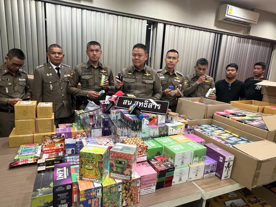 ตำรวจสน.สุทธิสารบุกทลายแหล่งจำหน่ายบุหรี่ไฟฟ้ากลางกรุง ยึดของกลางกว่า 3 หมื่นชิ้น รวมมูลค่ากว่า 5 ล้านบาท